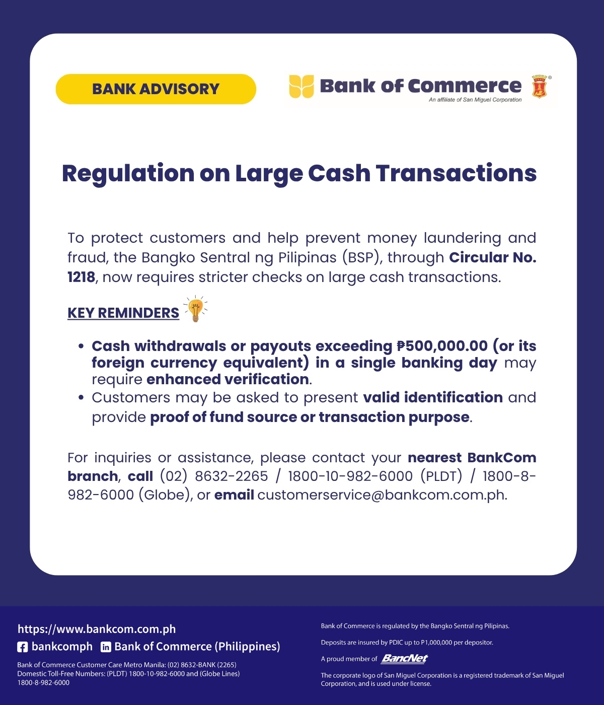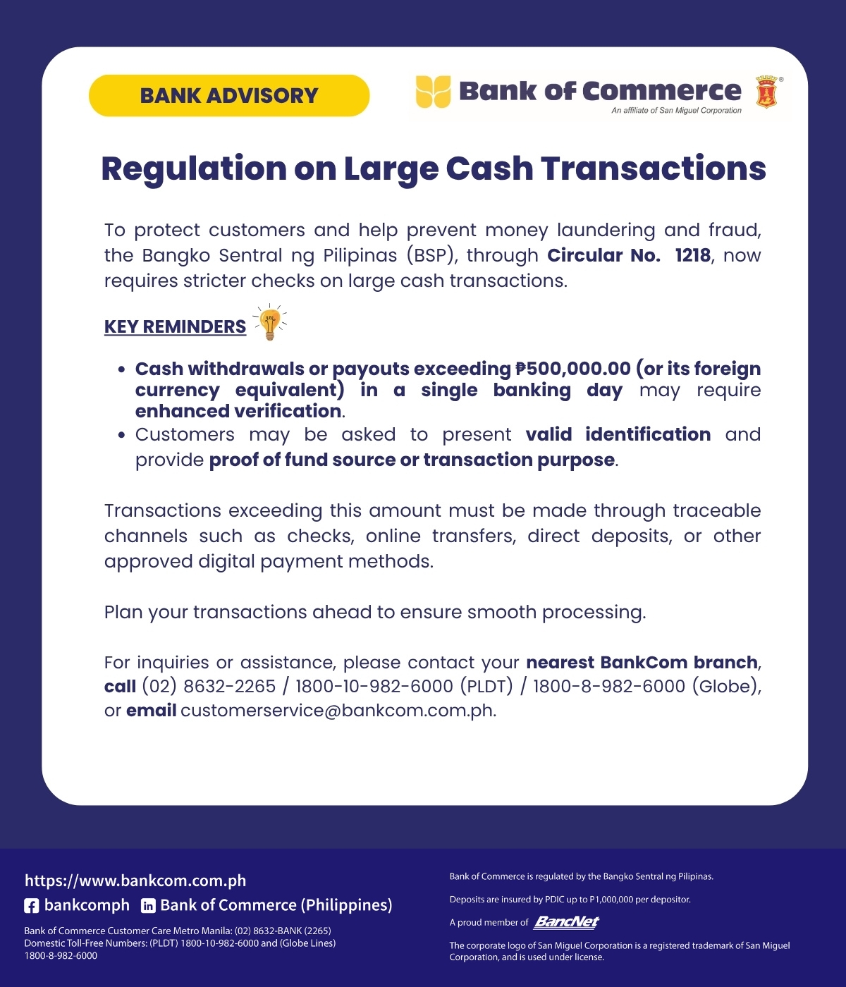 BANK ADVISORY: BSP Sets Daily Cash Withdrawal Limit at ₱500,000.00