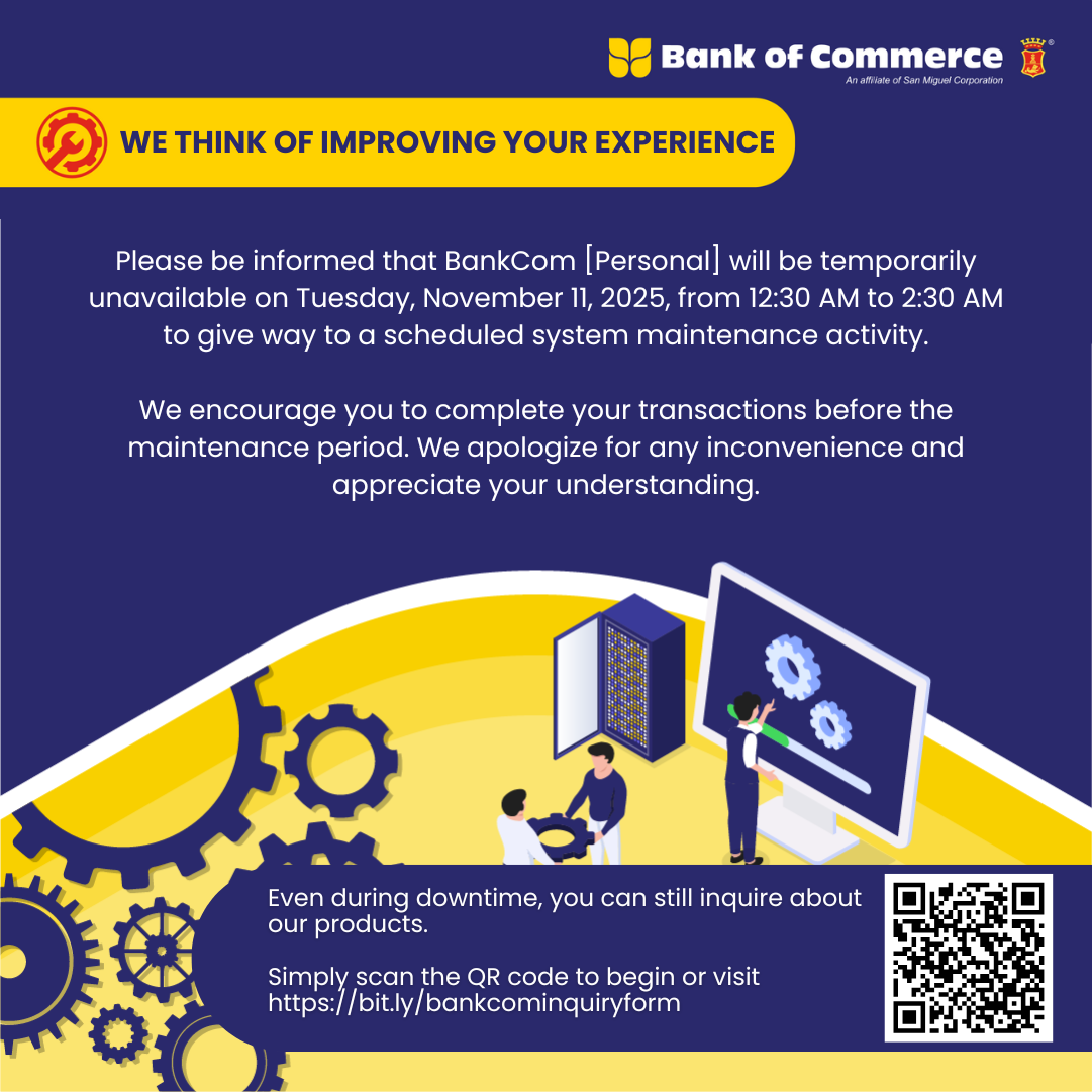 CLIENT ADVISORY: BANKCOM SYSTEM MAINTENANCE ACTIVITY ON NOVEMBER 11, 2025 (12:30 AM – 2:30 AM)