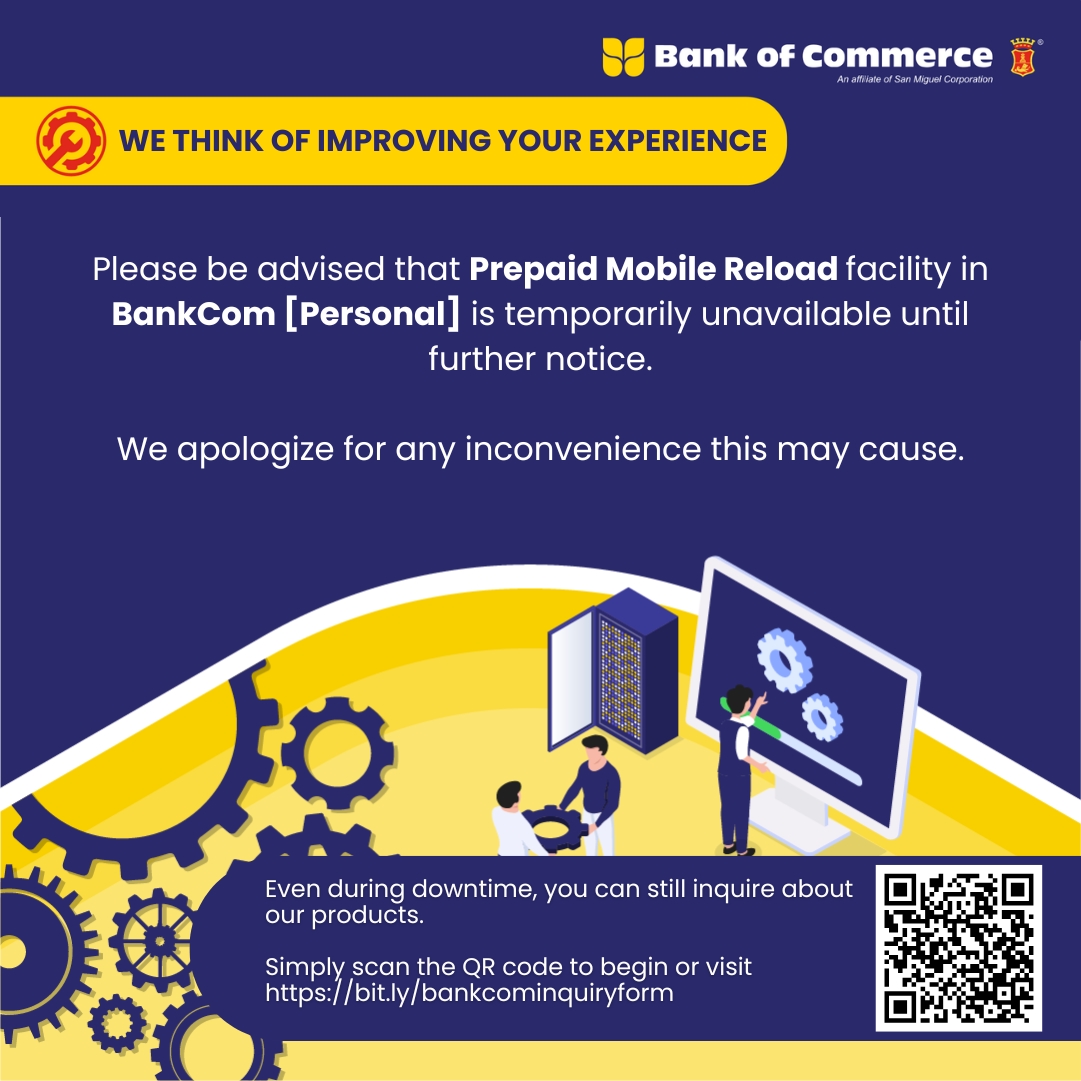 CLIENT ADVISORY: BANKCOM SYSTEM MAINTENANCE ACTIVITY | PREPAID MOBILE RELOAD (JANUARY 30, 2026)