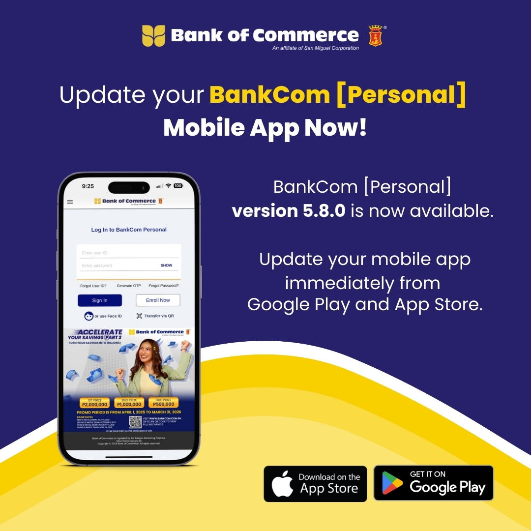 Enjoy smoother banking with BankCom [Personal] App Version 5.8.0. Download now!