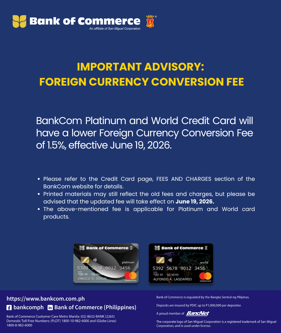 IMPORTANT ADVISORY: FOREIGN CURRENCY CONVERSION FEE