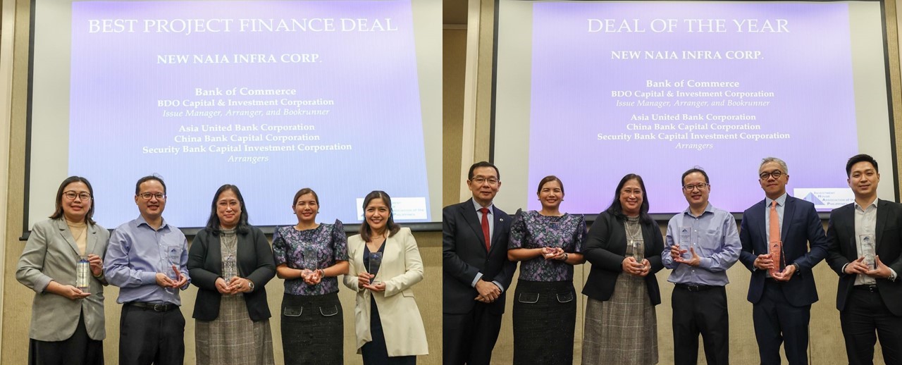 November 26, 2025San Miguel Corporation (SMC) affiliate and one of the fastest growing universal banks in the Philippines, Bank of Commerce (BankCom) has already established its excellent track record in facilitating both public and private capital-raising transactions ever since its entry to the investment banking space in 2022. BankCom won the Deal of the Year (Large Cap) and Best Project Finance Deal (Large Cap) for the second year in a row at the 2025 Investment House Association of the Philippines (IHAP) Awards. The recognition was for the Bank’s vital role as Issue Manager, Lead Arranger and Bookrunner through its Investment Banking Group (IBG) for the New NAIA Infra Corp Php 80 Billion Syndicated Term Loan Facility that will help modernize and rehabilitate the country’s primary airport under the Public Private Partnership (PPP). At the 2024 IHAP Awards the year prior, BankCom was recognized for its role as Joint Lead Arranger in the SMC Mass Rail Transit 7 (MRT-7) Php 100 billion Syndicated Term Loan Facility that finances the completion of a major transportation project that will also boost the economy and create jobs and opportunities for many Filipinos. The annual IHAP awards celebrate the investment industry’s exceptional performance and contribution in the capital markets and Philippine economy. “We are honored to be receiving these recognitions again from IHAP for our role in facilitating financial transactions for SMC’s nation-building projects! These awards testify to our capabilities in providing value-driven financial solutions and executing successful series of offerings, as well as to our strong commitment to grow and expand our offerings,” says BankCom’s Senior Vice President and Investment Banking Group Head Luis Martin E. Villalon. “We are more inspired and motivated to foster strong client relationships, provide excellent service and continuously mark BankCom’s caliber in investment banking,” adds SVP Villalon. About Bank of Commerce Bank of Commerce is a publicly listed universal bank that has helped its clients, communities and the conglomerate’s partners by delivering the best choice of financial services harnessing the strengths of the SMC Group. BankCom posted an unaudited net income of PHP 2.75 billion as of 30 September 2025, marking a 24% rise year-on-year underscoring the Bank’s strong revenue growth. BankCom maintains a network of 141 branches (inclusive of the main office branch, 139 regular branches and 1 branch lite) and 274 Automated Teller Machines (ATMs) including Cash Kiosks strategically located nationwide.